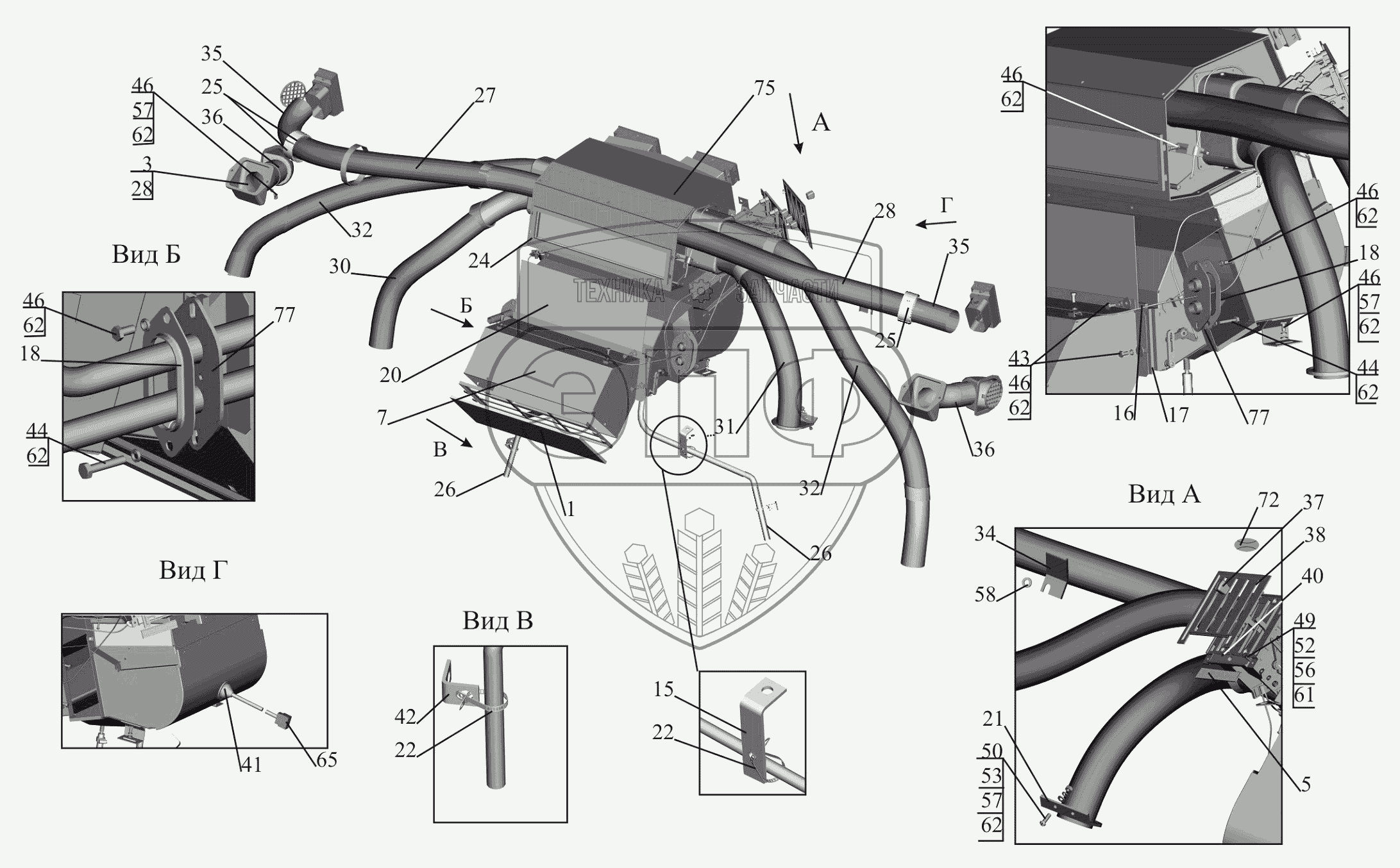 Каталог запасных частей к технике: МАЗ-650119. Установка отопителя 544019-8100001-010