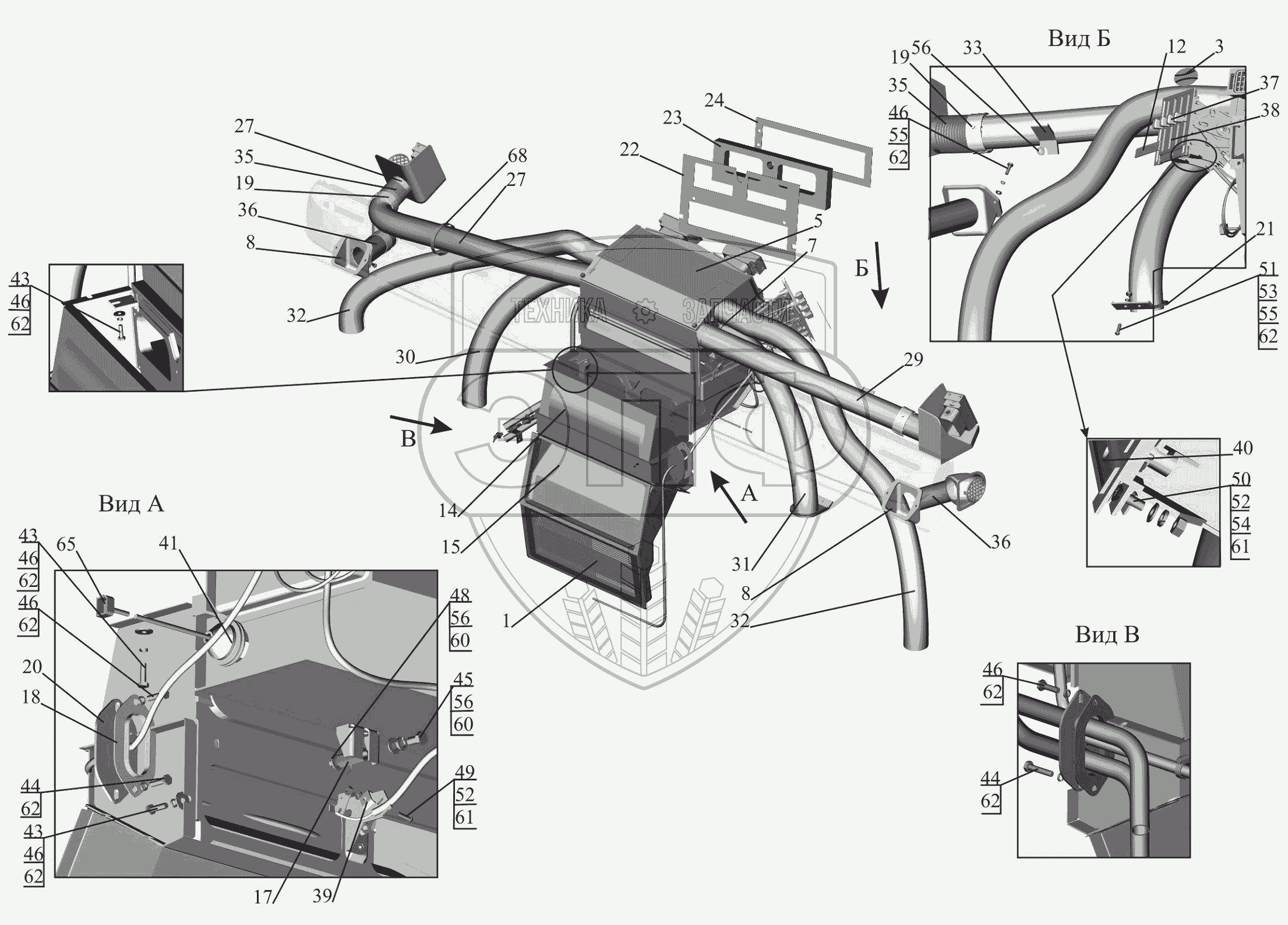 Каталог запасных частей к технике: МАЗ-650119. Установка отопителя 650119-8100001