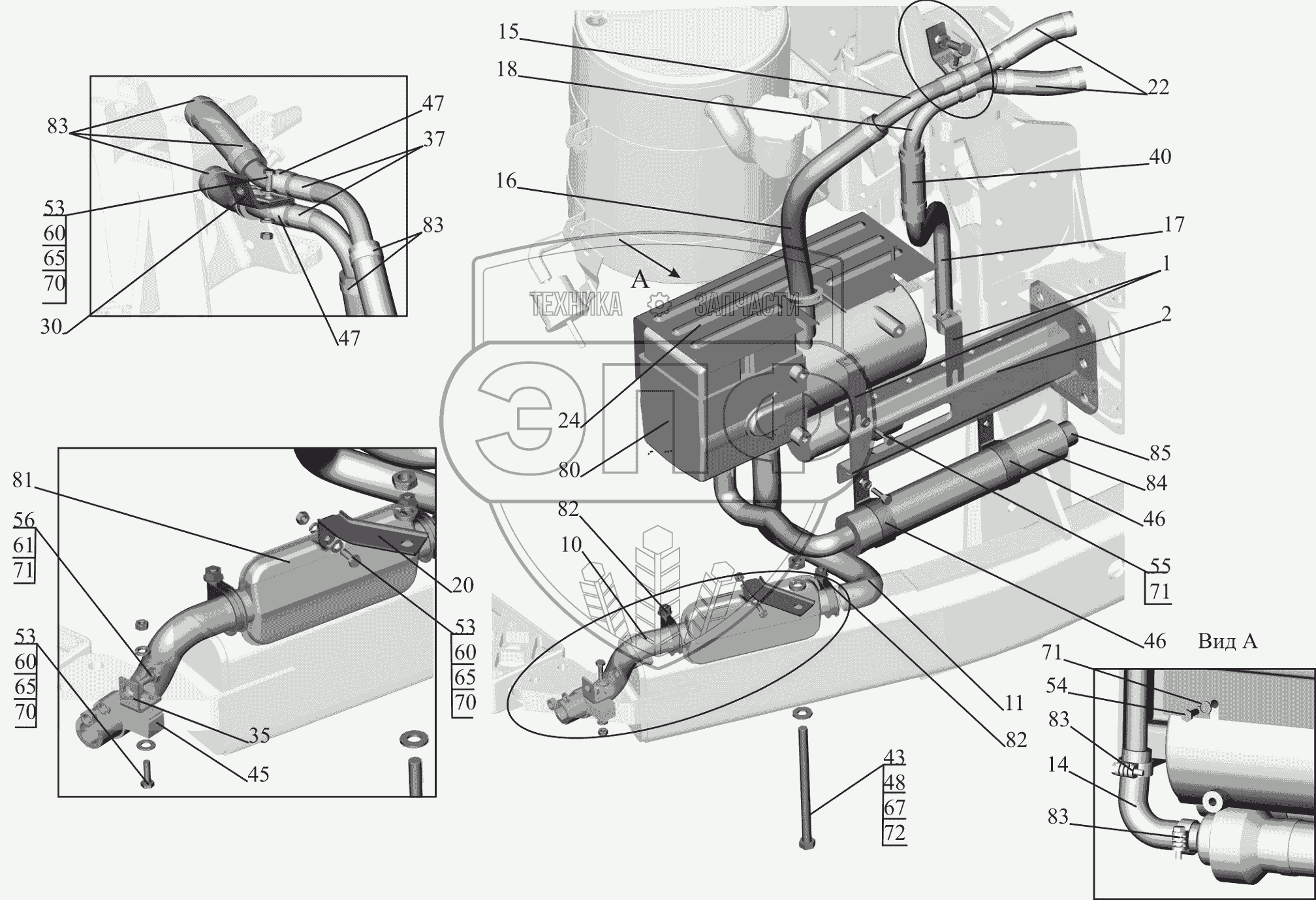 Каталог запасных частей к технике: МАЗ-650119. Установка подогревателя 544019-1015001