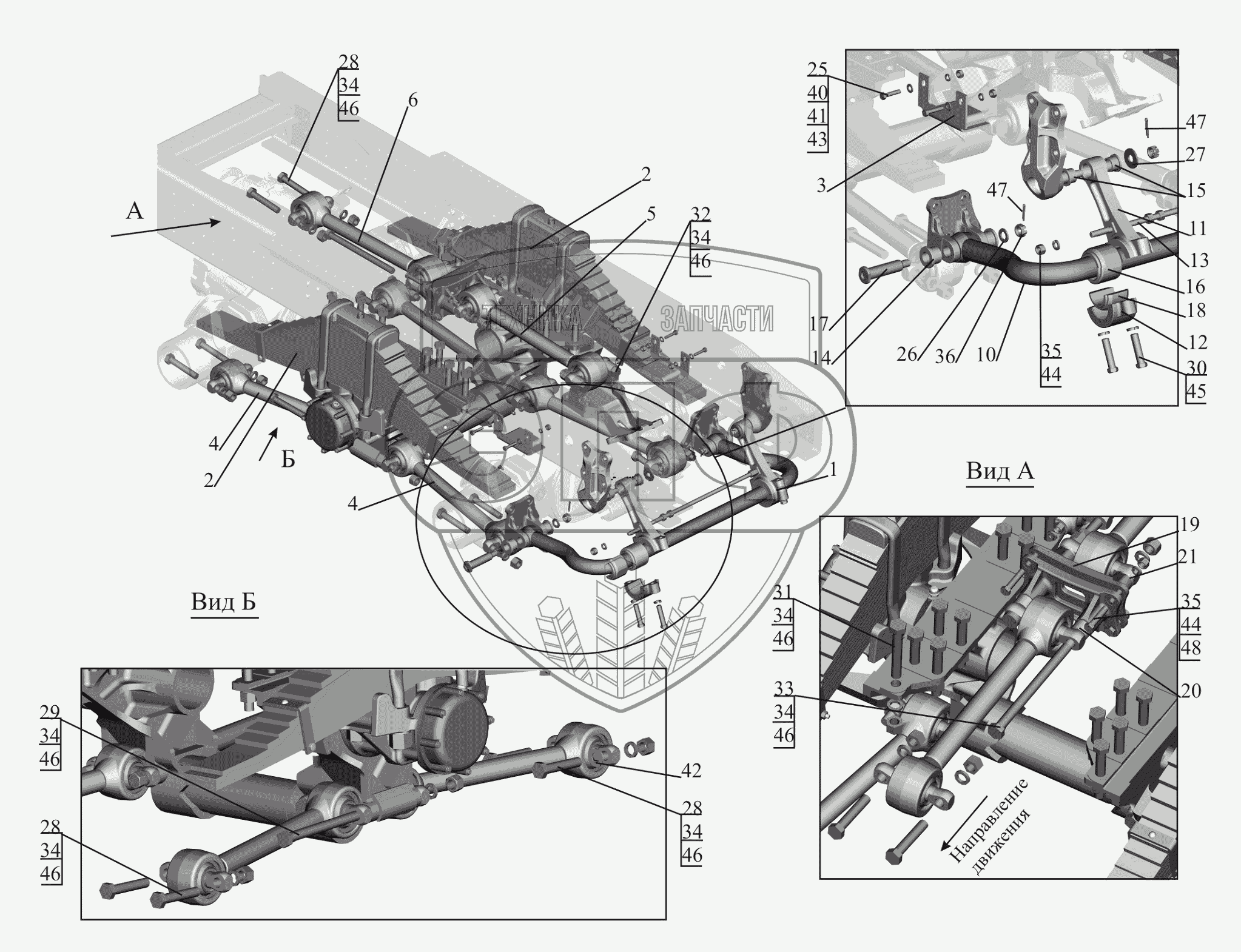 Каталог запасных частей к технике: МАЗ-650119. Установка подвески задней 650119-2900002