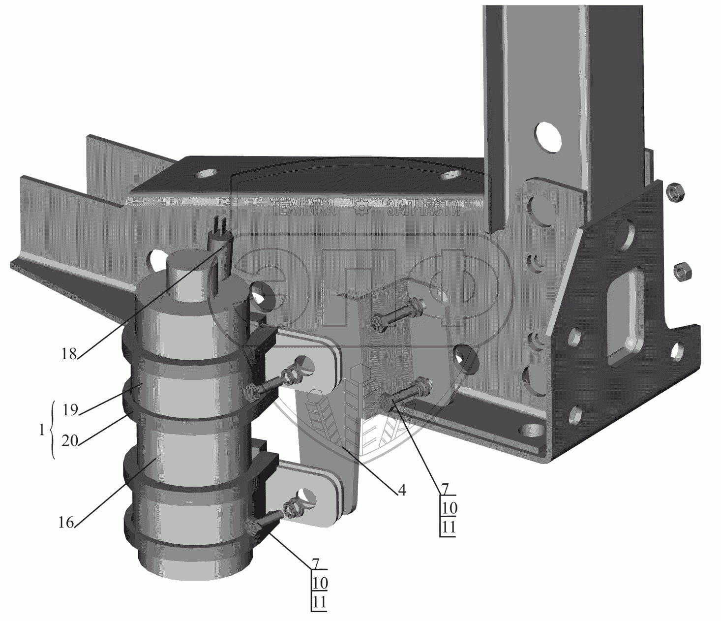Каталог запасных частей к технике: МАЗ-650119. Установка ресивера-осушителя 544020-8100036