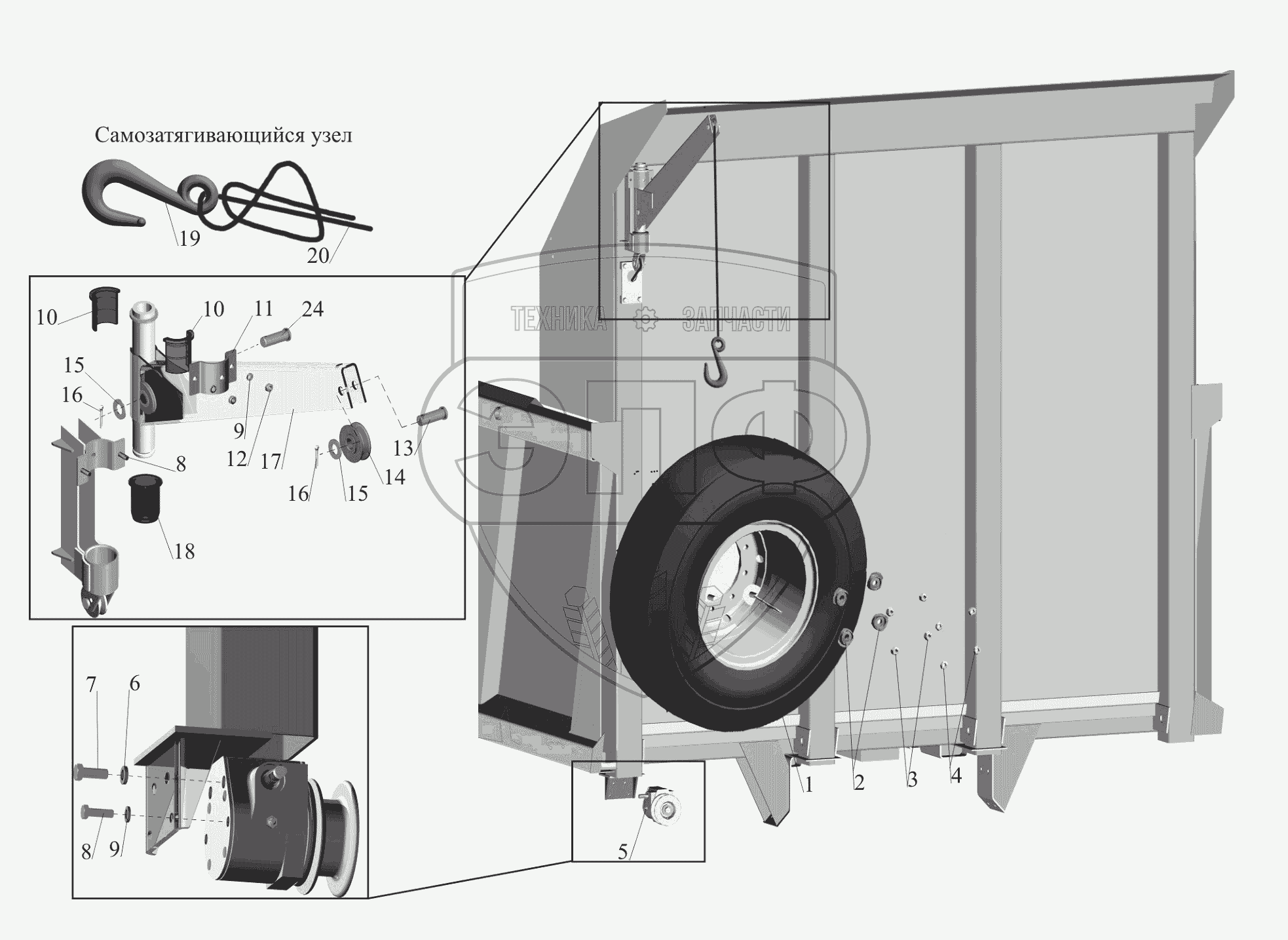 Каталог запасных частей к технике: МАЗ-650119. Установка запасного колеса