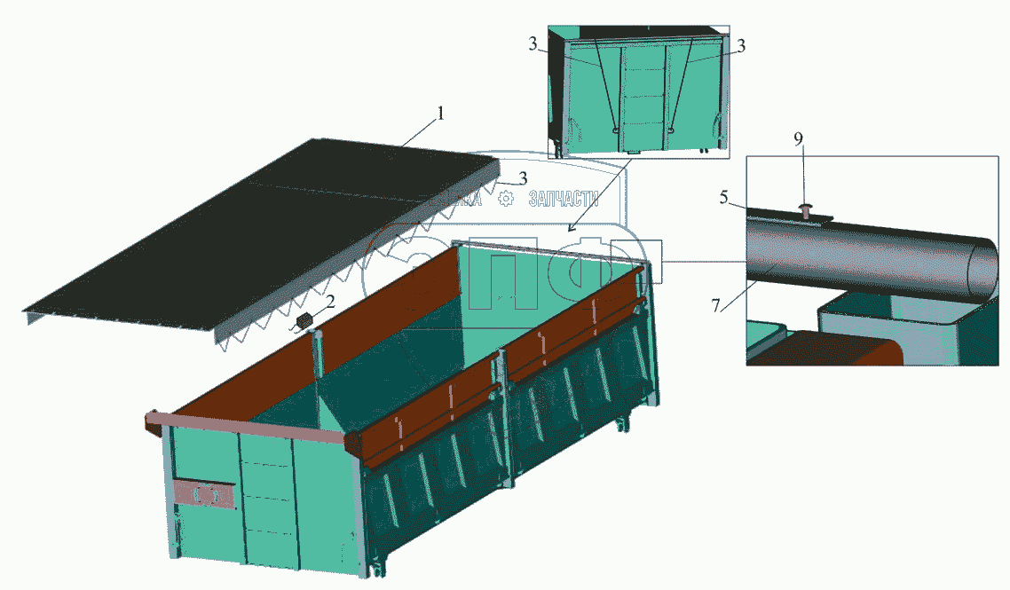 Каталог запасных частей к технике: МАЗ-6501B9. Установка тента 551608-8500004