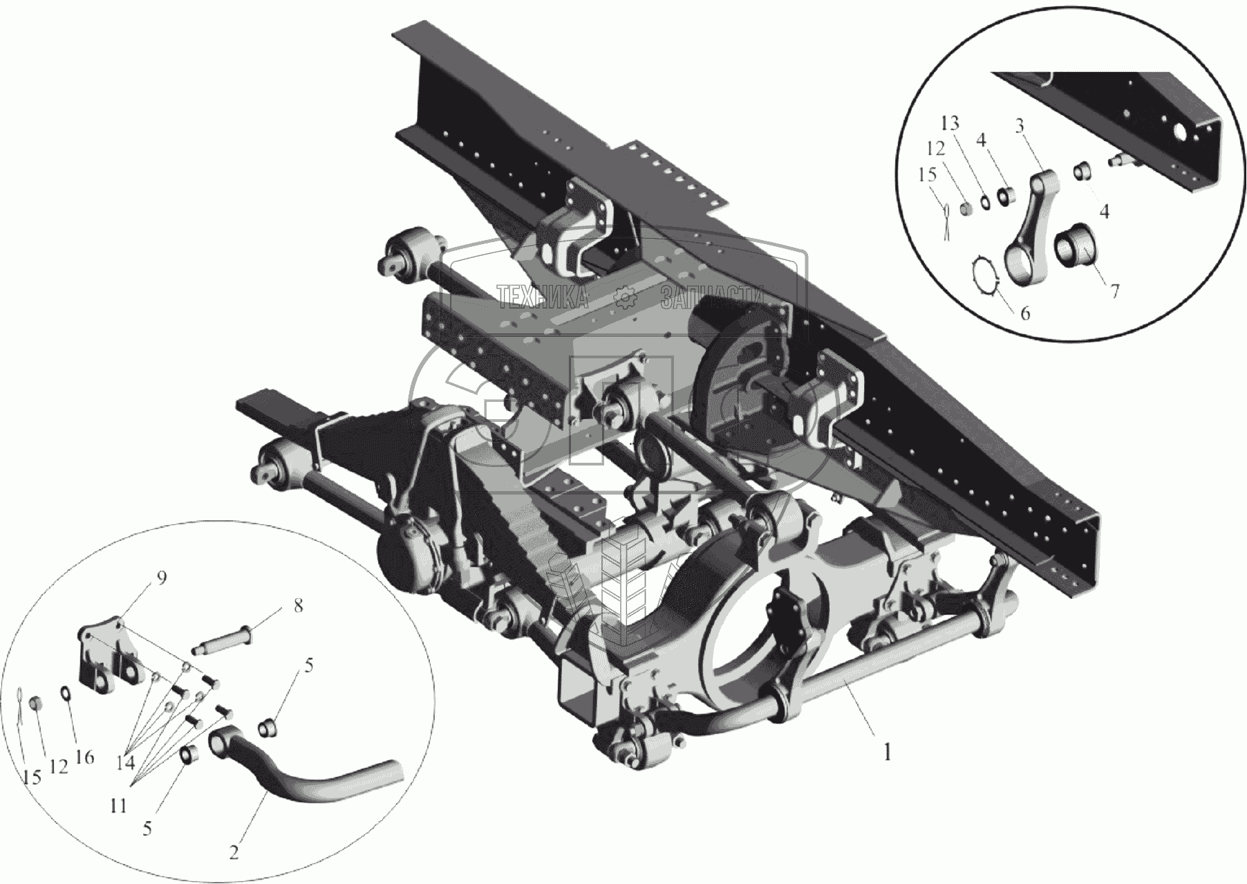 Каталог запасных частей к технике: МАЗ-651705. Подвеска балансирная 651705-2900002