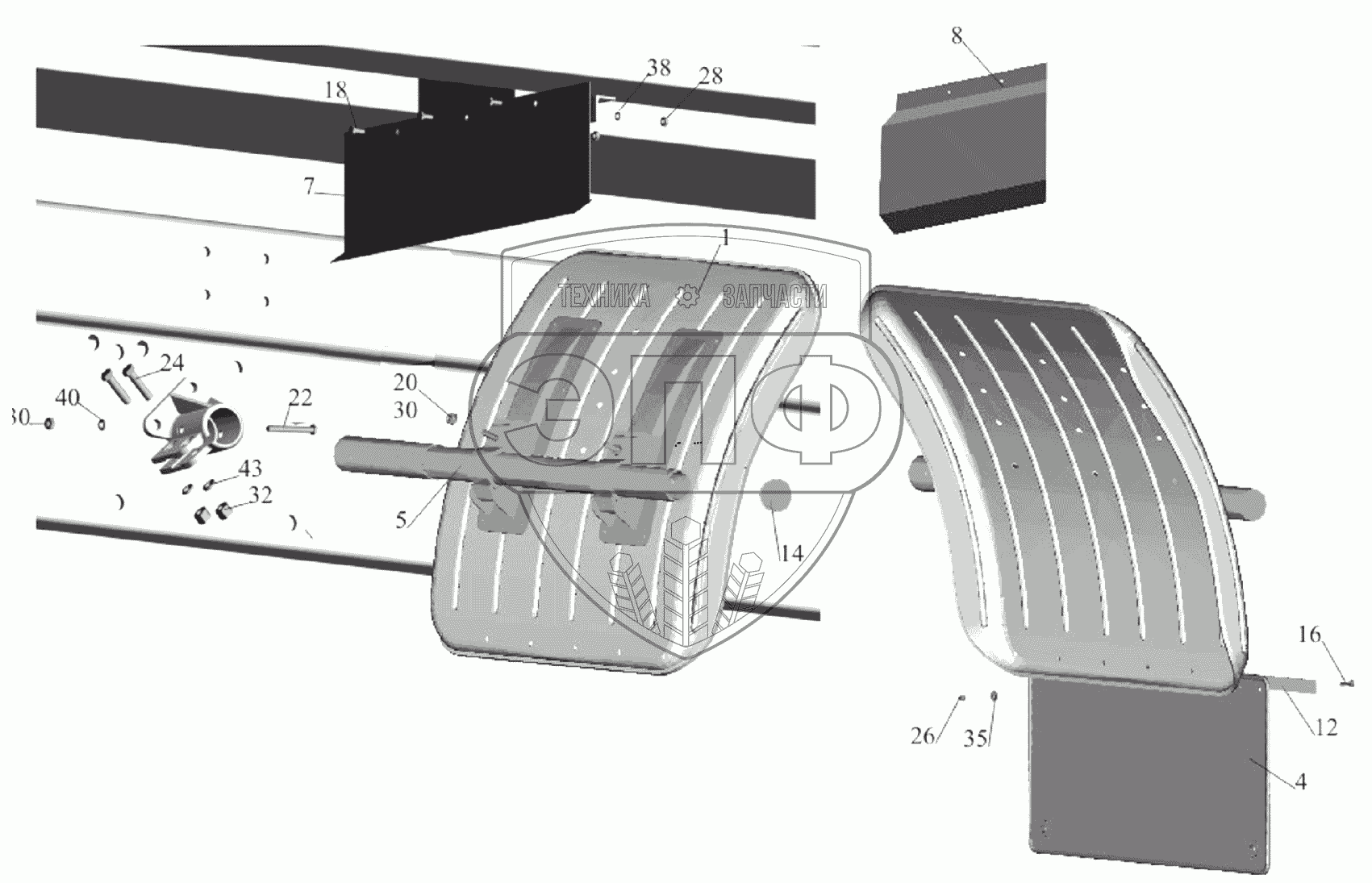 Каталог запасных частей к технике: МАЗ-651705. Установка крыльев 5309-8500048