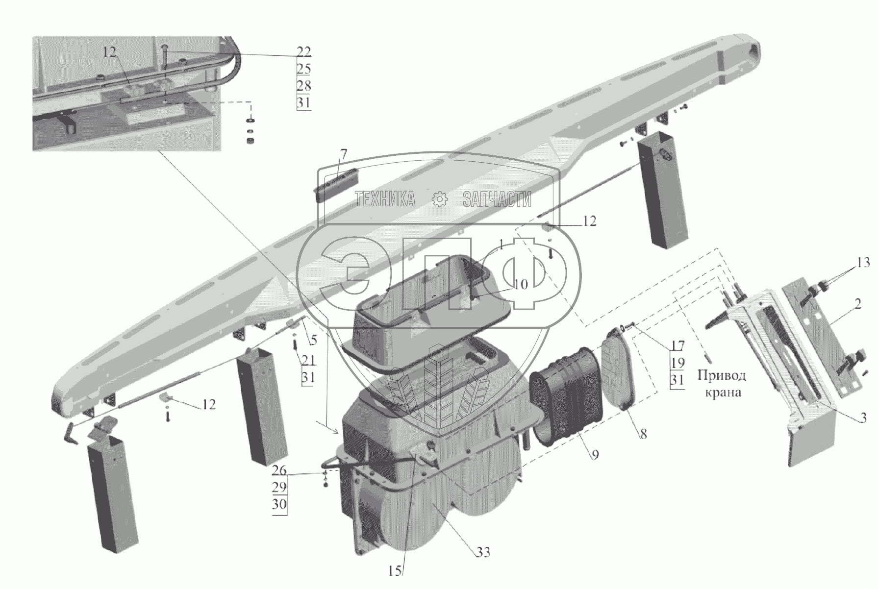 Каталог запасных частей к технике: МАЗ-651705. Установка отопителя 64221-8100001