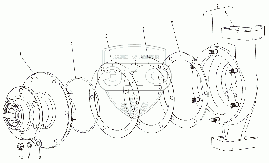 Каталог запасных частей к технике: МАЗ-74131. Насос водяной 547A-1754010-10