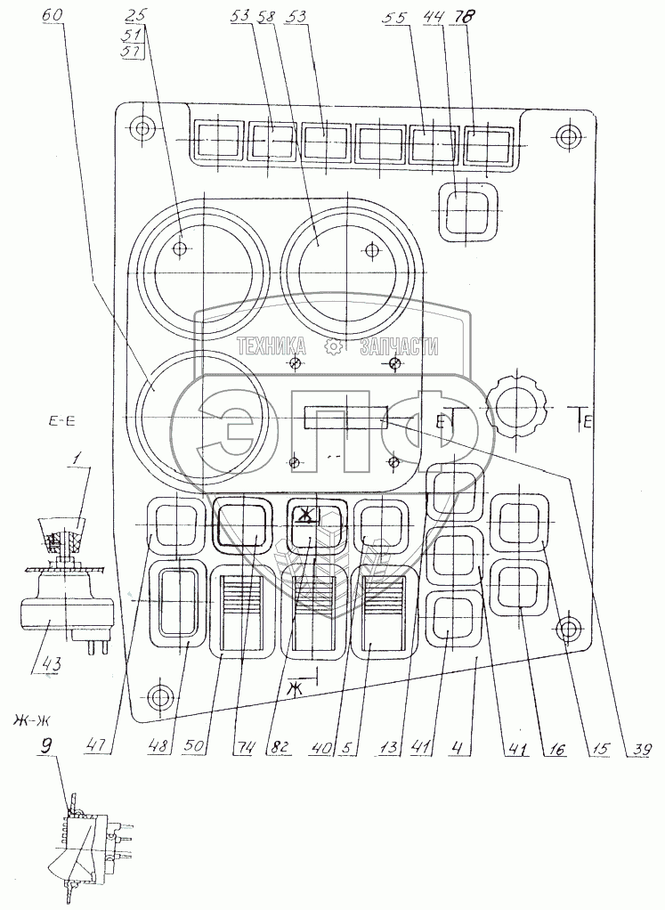 Каталог запасных частей к технике: МАЗ-74131. Панель приборов освещения