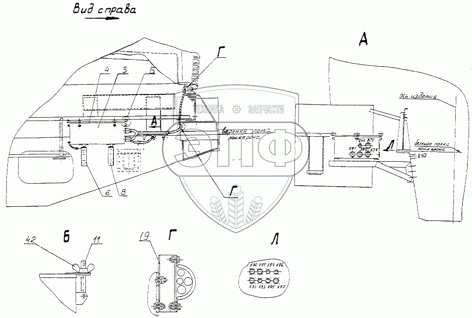 Каталог запасных частей к технике: МАЗ-74131. Установка отсека коммутационной аппаратуры