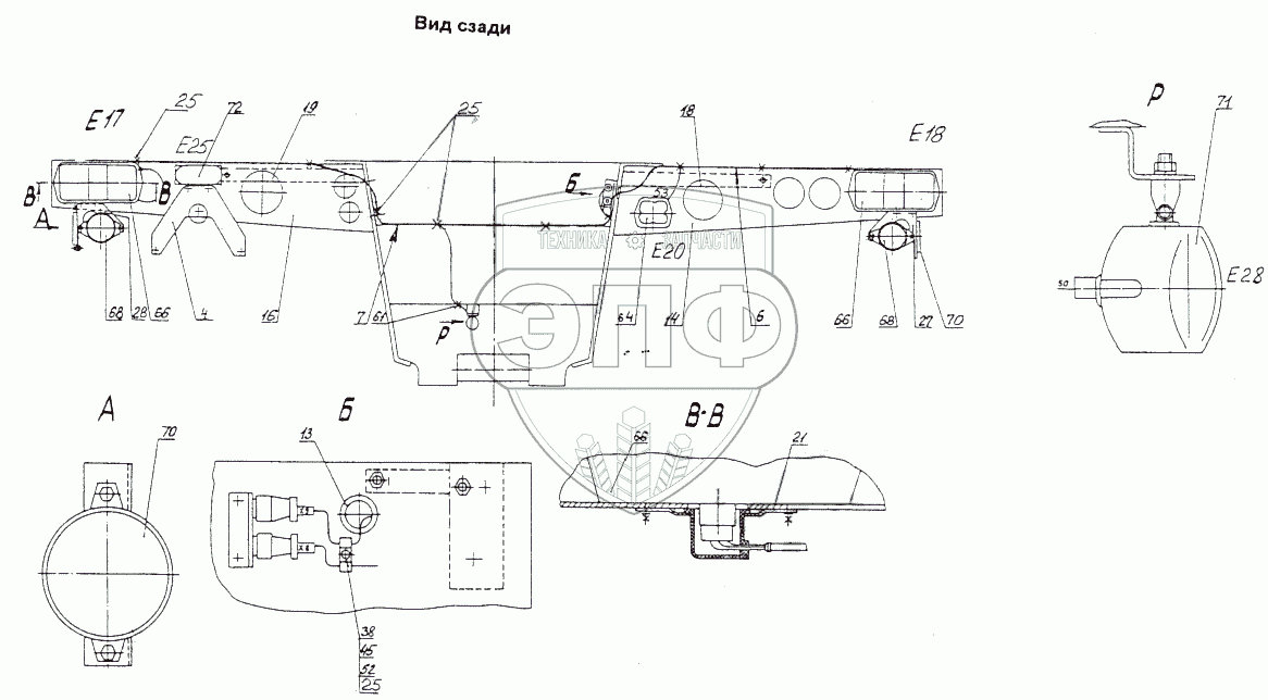 Каталог запасных частей к технике: МАЗ-74131. Установка задних фонарей