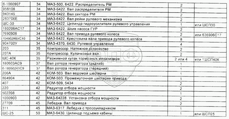 Каталог запасных частей к технике: МАЗ Справочник. Каталожные номера и применяемость подшипников