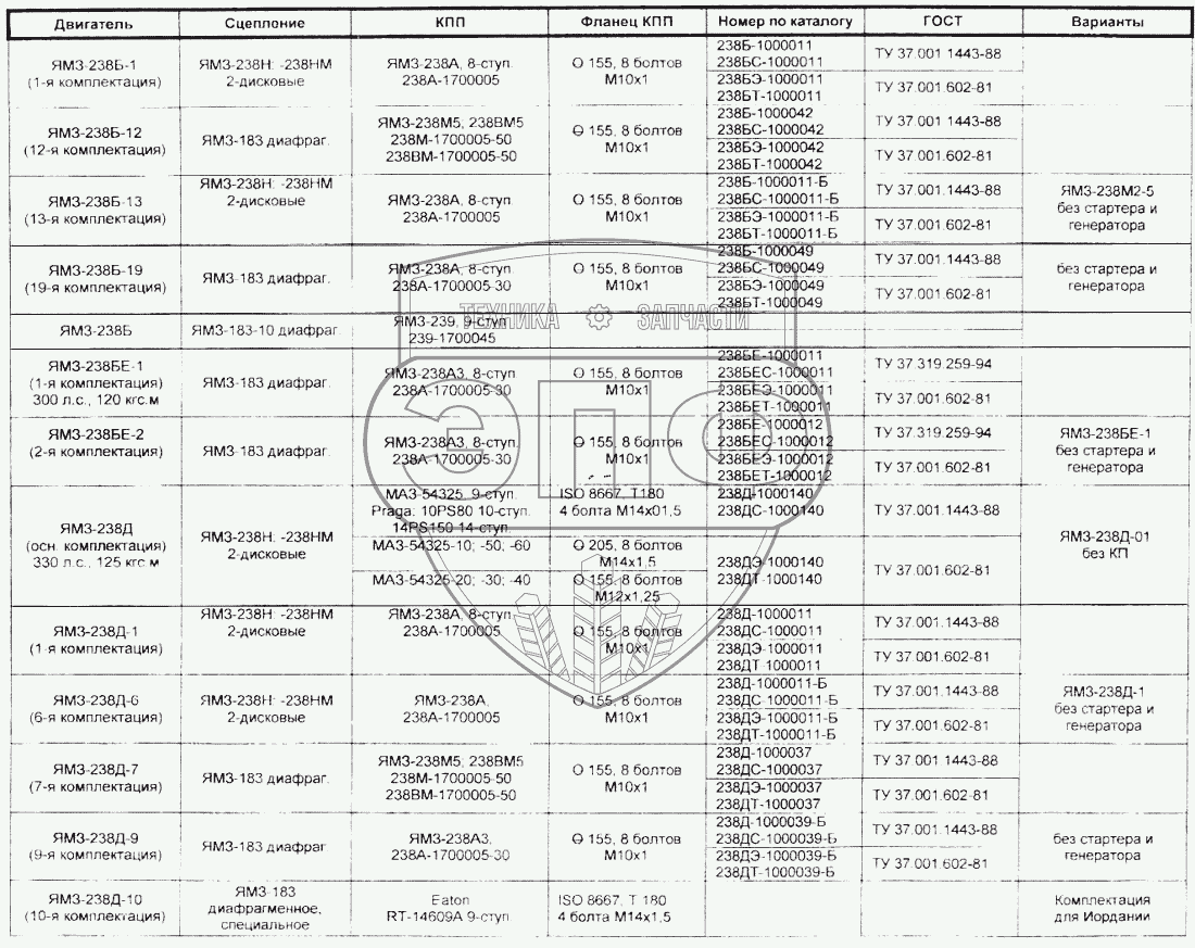 Каталог запасных частей к технике: МАЗ Справочник. Комплектация двигателей ЯМЗ