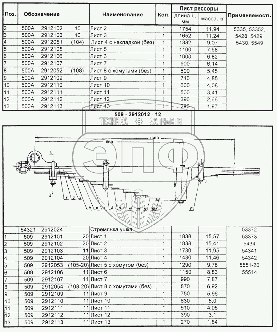 Каталог запасных частей к технике: МАЗ Справочник. Рессоры автомобилей
