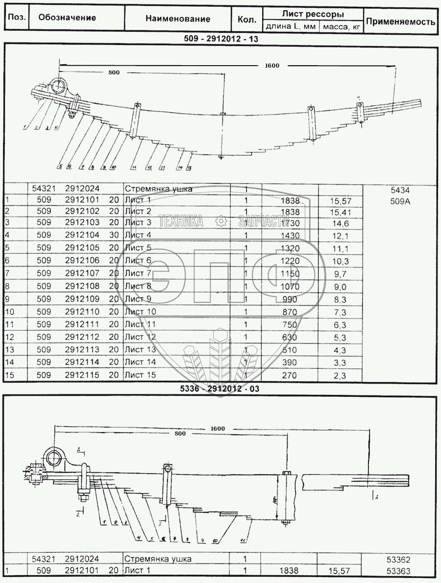 Каталог запасных частей к технике: МАЗ Справочник. Рессоры автомобилей