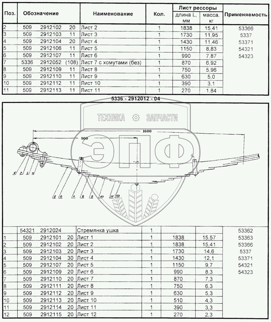 Каталог запасных частей к технике: МАЗ Справочник. Рессоры автомобилей