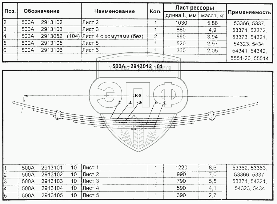 Каталог запасных частей к технике: МАЗ Справочник. Рессоры автомобилей