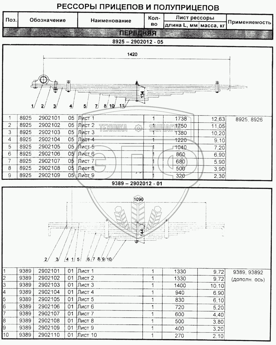 Каталог запасных частей к технике: МАЗ Справочник. Рессоры прицепов и полуприцепов