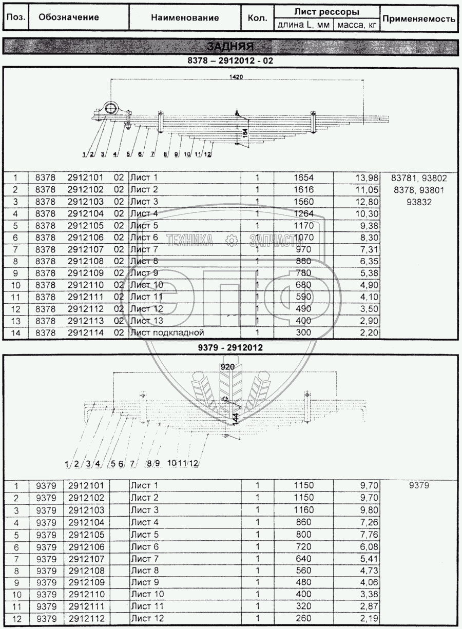 Каталог запасных частей к технике: МАЗ Справочник. Рессоры прицепов и полуприцепов