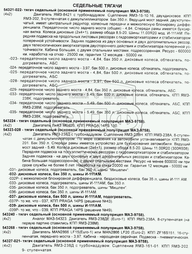 Каталог запасных частей к технике: МАЗ Справочник. Седельные тягачи