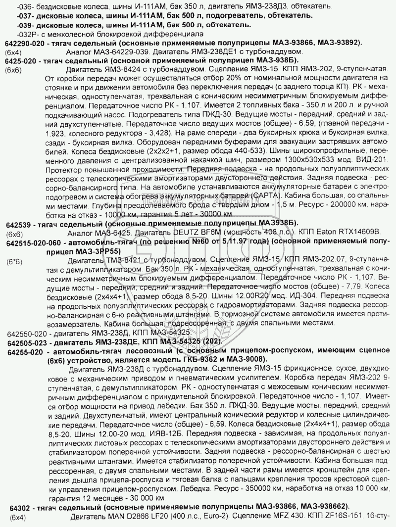 Каталог запасных частей к технике: МАЗ Справочник. Седельные тягачи