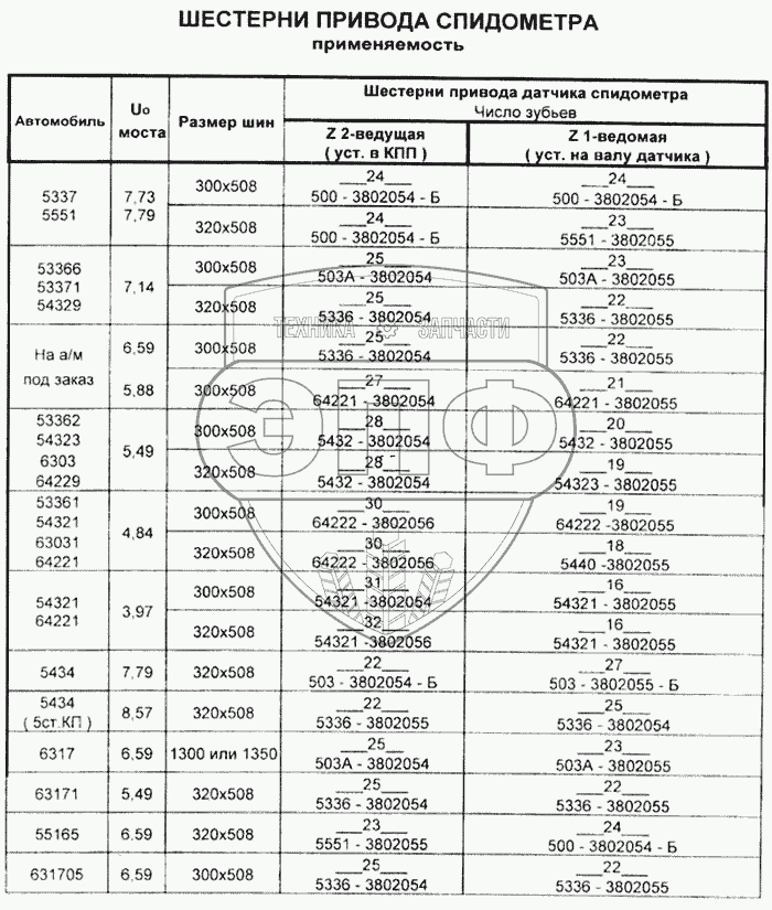 Каталог запасных частей к технике: МАЗ Справочник. Шестерни привода спидометра (применяемость)