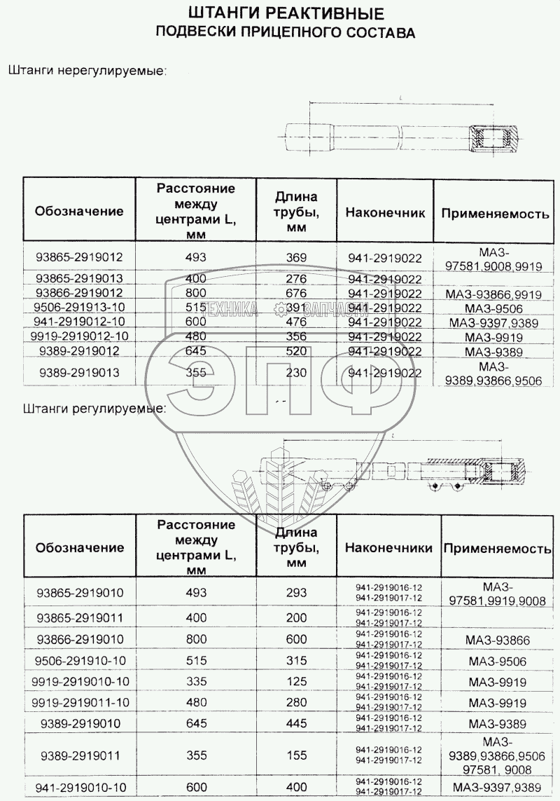 Каталог запасных частей к технике: МАЗ Справочник. Штанги реактивные подвески прицепного состава