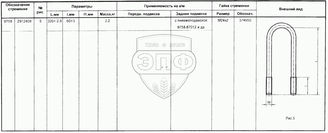Каталог запасных частей к технике: МАЗ Справочник. Стремянки рессор. Применяемость и параметры
