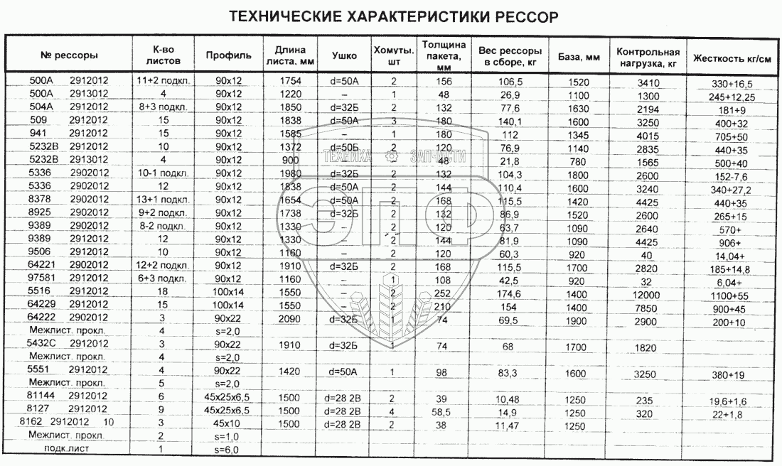 Каталог запасных частей к технике: МАЗ Справочник. Технические характеристики рессор