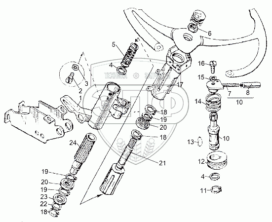 Каталог запасных частей к технике: МЗКТ-65151 "Волат". Колонка рулевая 64221-3444010