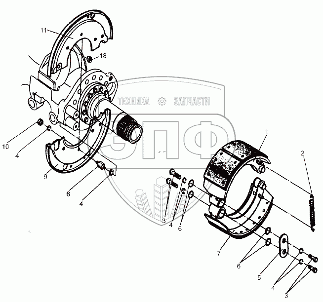Каталог запасных частей к технике: МЗКТ-65151 "Волат". Тормоз среднего моста