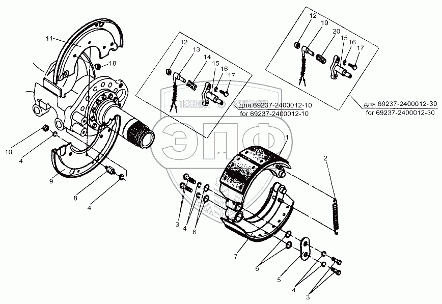 Каталог запасных частей к технике: МЗКТ-65151 "Волат". Тормоз заднего моста
