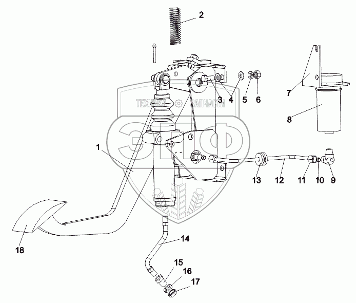 Каталог запасных частей к технике: МЗКТ-65151 "Волат". Установка механизма управления сцеплением
