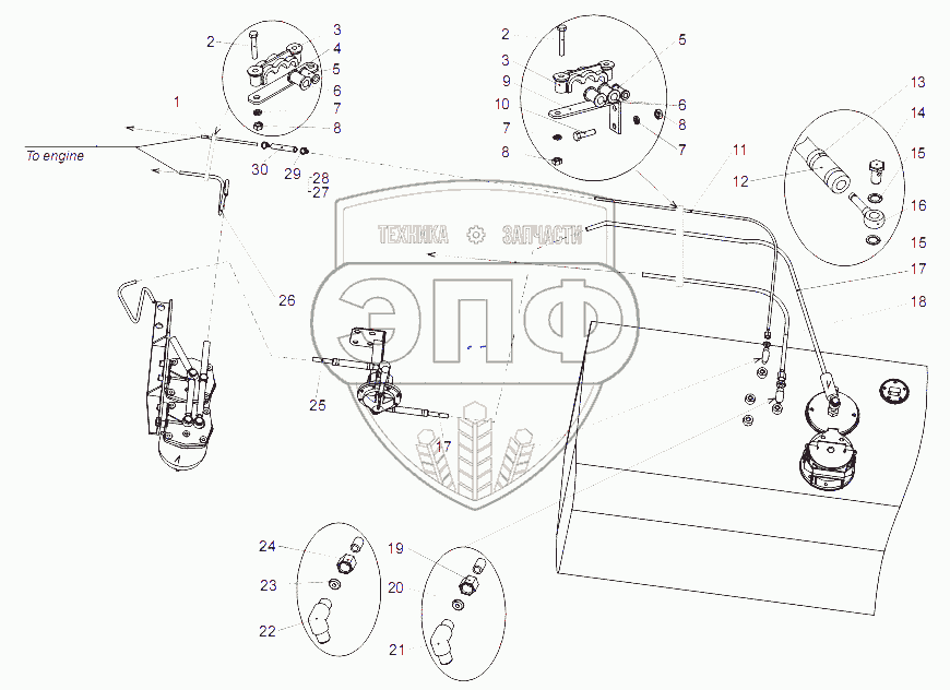 Каталог запасных частей к технике: МЗКТ-65151 "Волат". Установка топливопроводов