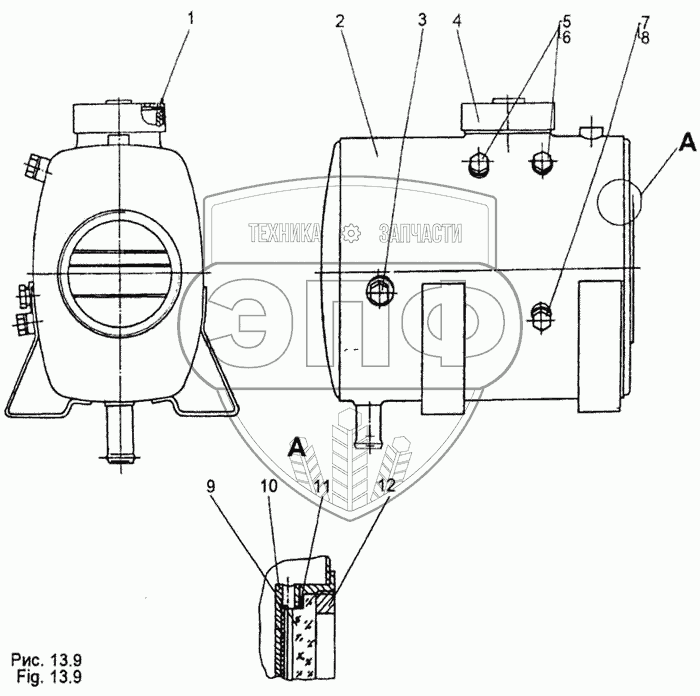 Каталог запасных частей к технике: МЗКТ-65158. Бачок расширительный