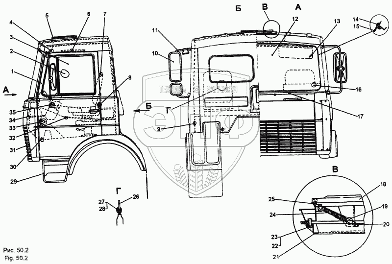Каталог запасных частей к технике: МЗКТ-65158. Кабина