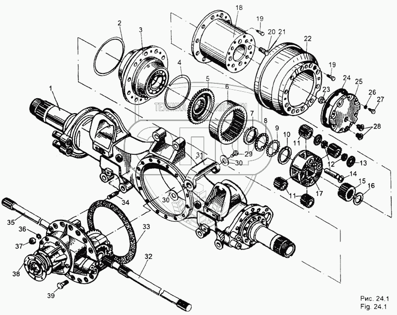 Каталог запасных частей к технике: МЗКТ-65158. Мост задний. Детали колесной передачи
