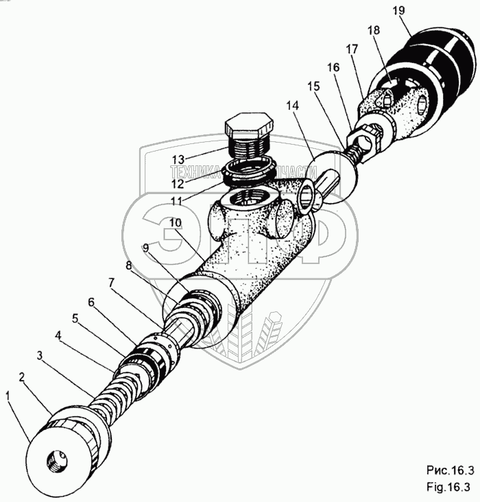 Каталог запасных частей к технике: МЗКТ-65158. Подпедальный цилиндр 69237-1602300