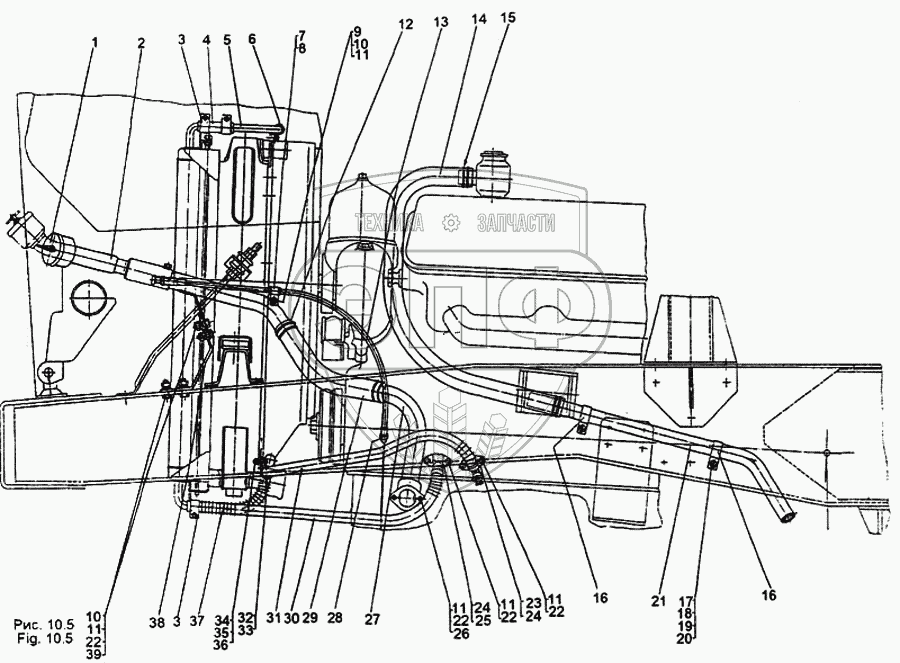 Каталог запасных частей к технике: МЗКТ-65158. Установка агрегатов системы смазки