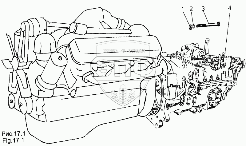 Каталог запасных частей к технике: МЗКТ-65158. Установка коробки передач