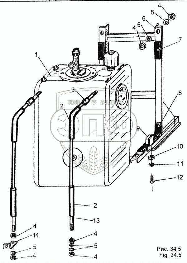 Каталог запасных частей к технике: МЗКТ-65158. Установка масляного бака