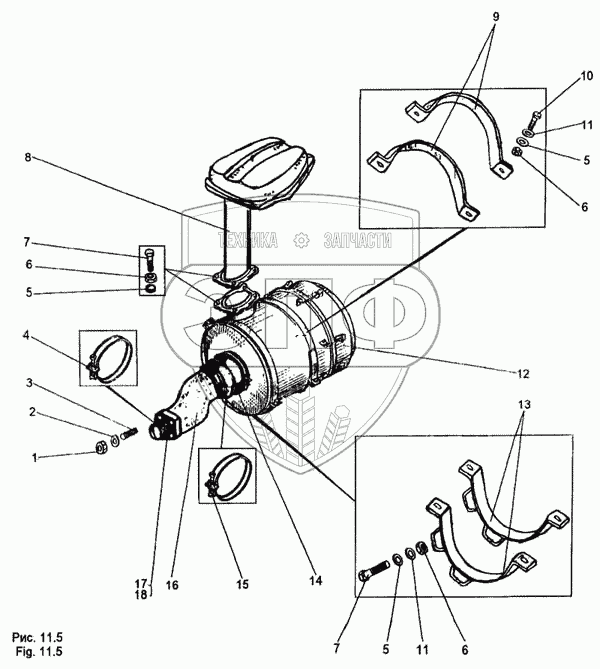 Каталог запасных частей к технике: МЗКТ-65158. Установка воздухоочистителей