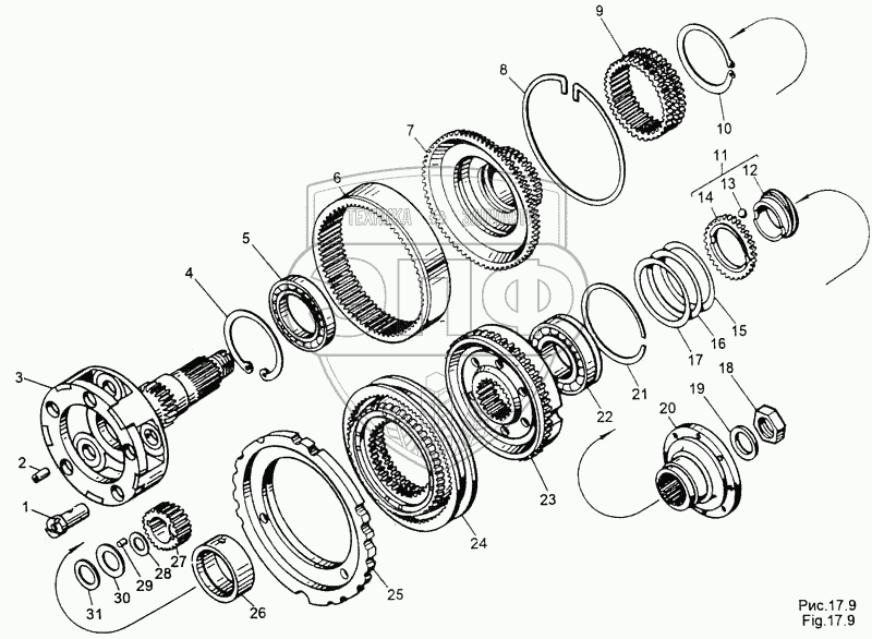 Каталог запасных частей к технике: МЗКТ-65158. Вал выходной 202-1721300