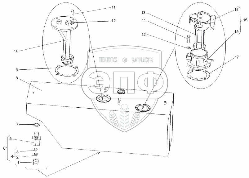 Каталог запасных частей к технике: МЗКТ-652511. Бак топливный 652511-1001010