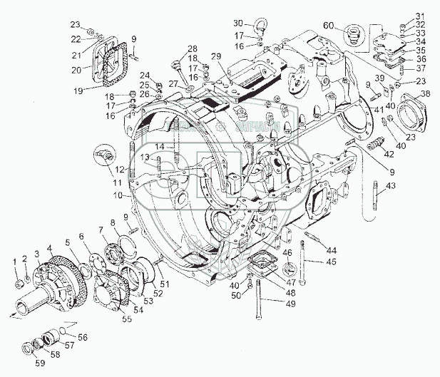 Каталог запасных частей к технике: МЗКТ-652511. Картерные детали коробки передач