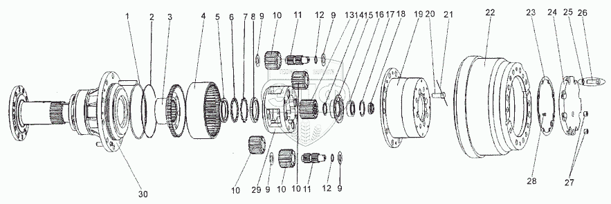 Каталог запасных частей к технике: МЗКТ-652511. Колесная передача переднего моста