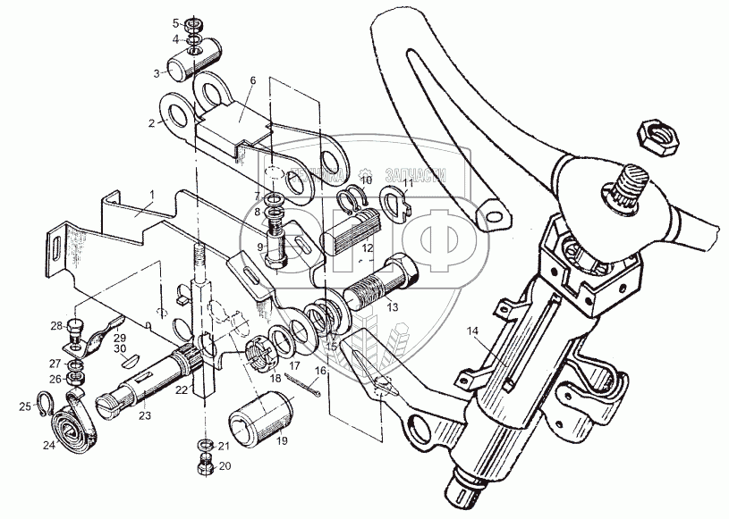 Каталог запасных частей к технике: МЗКТ-652511. Кронштейн с колонкой 64221-3403008