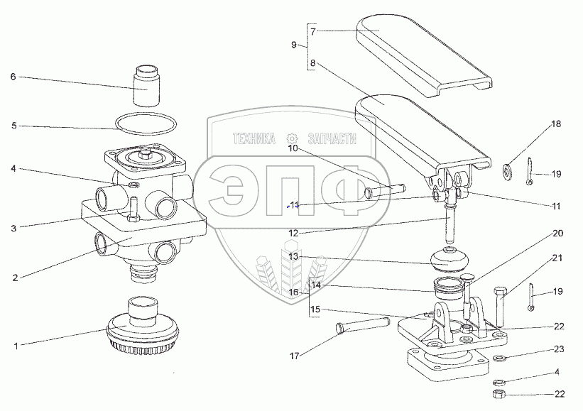 Каталог запасных частей к технике: МЗКТ-652511. Привод тормозного крана