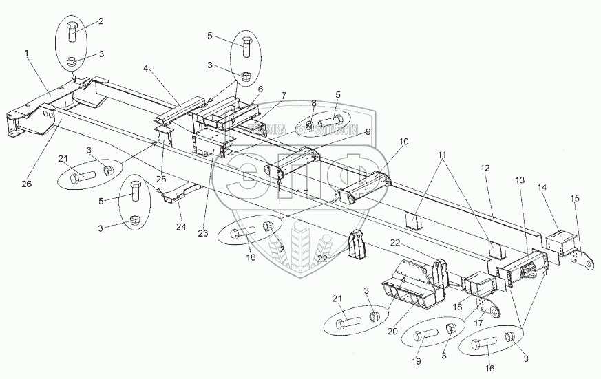 Каталог запасных частей к технике: МЗКТ-652511. Рама 652511-2800012