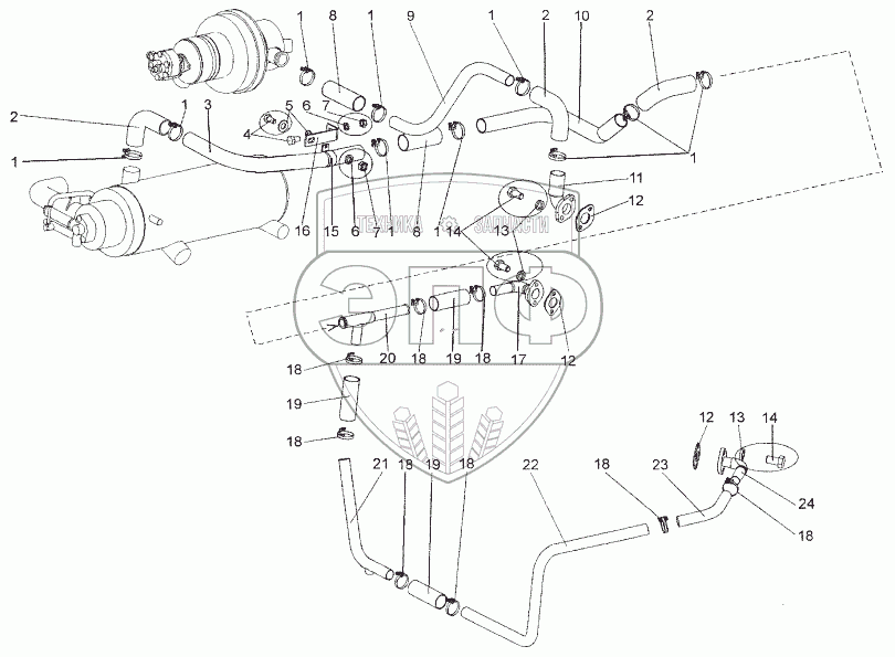 Каталог запасных частей к технике: МЗКТ-652511. Система охлаждения подогревателя (ПЖД)