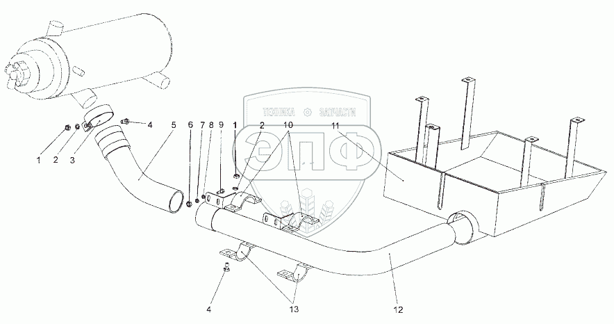 Каталог запасных частей к технике: МЗКТ-652511. Система выхлопа подогревателя (ПЖД)